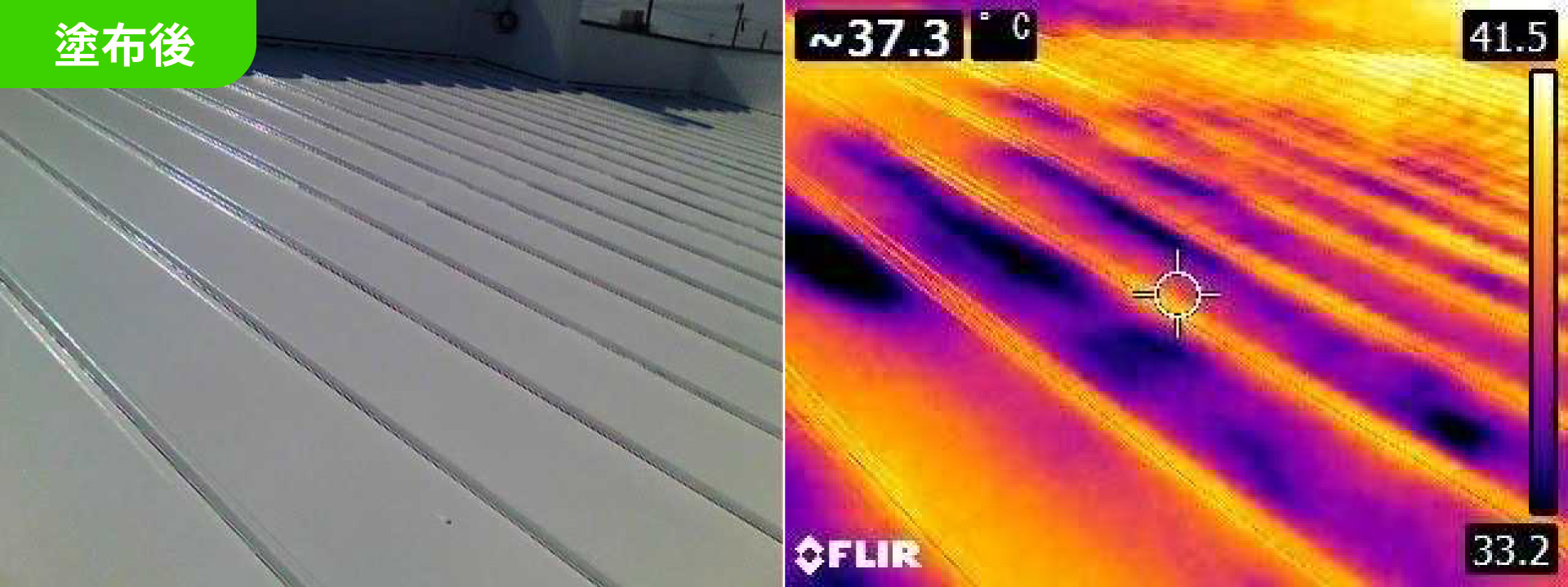 ↓塗装後:エシカルプロクール塗布により、最大15℃以上の温度低減を確認
